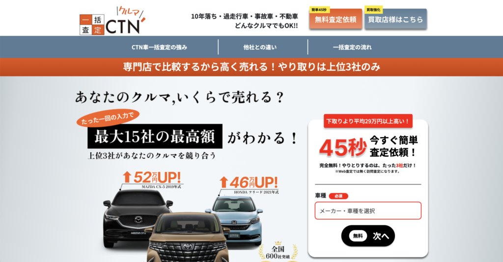一括で査定するので最高値がわかる「CTN」無料査定