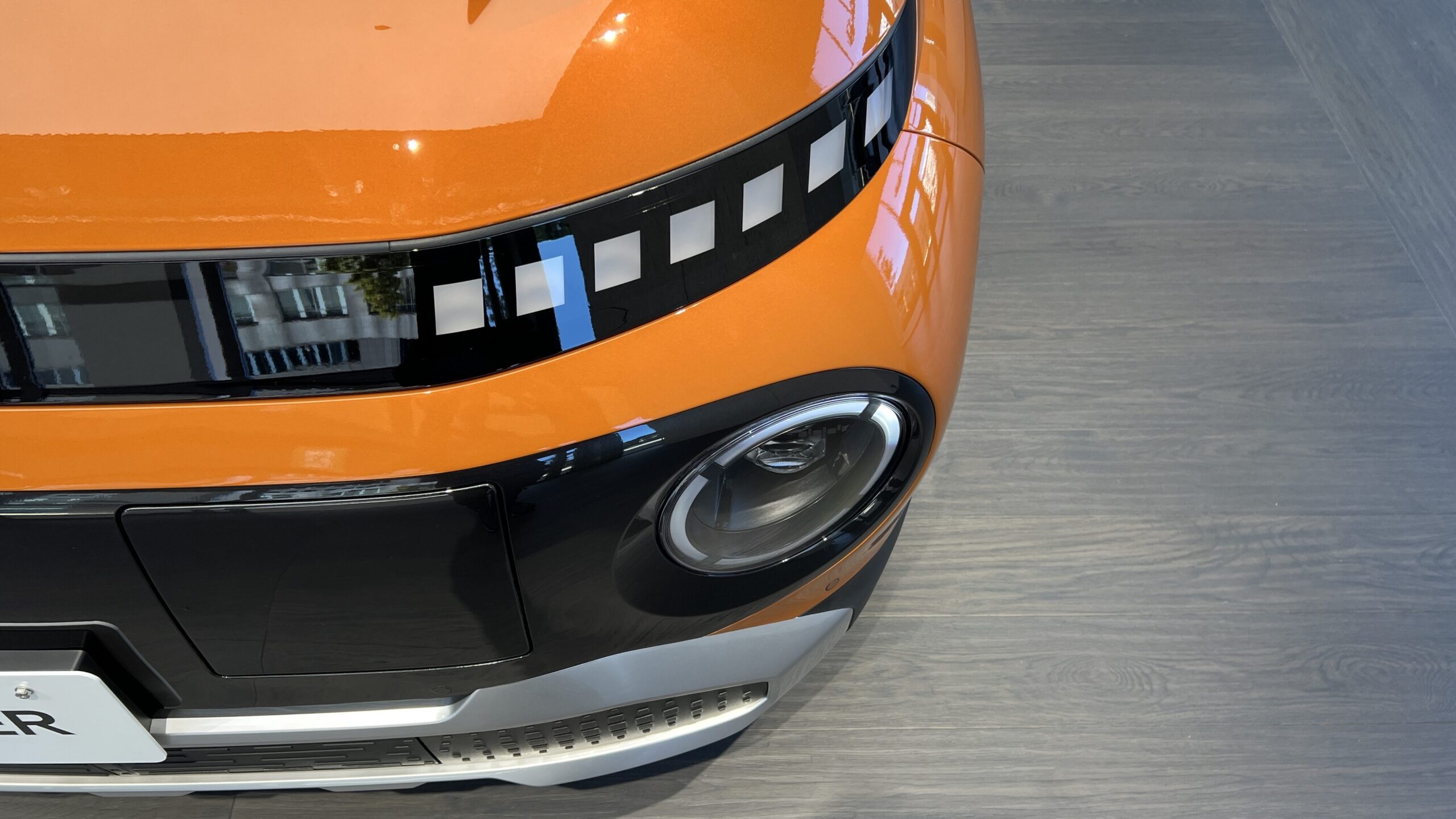 丸型ライトやピクセル風の意匠など、近未来感とかわいらしさを両立した外観。